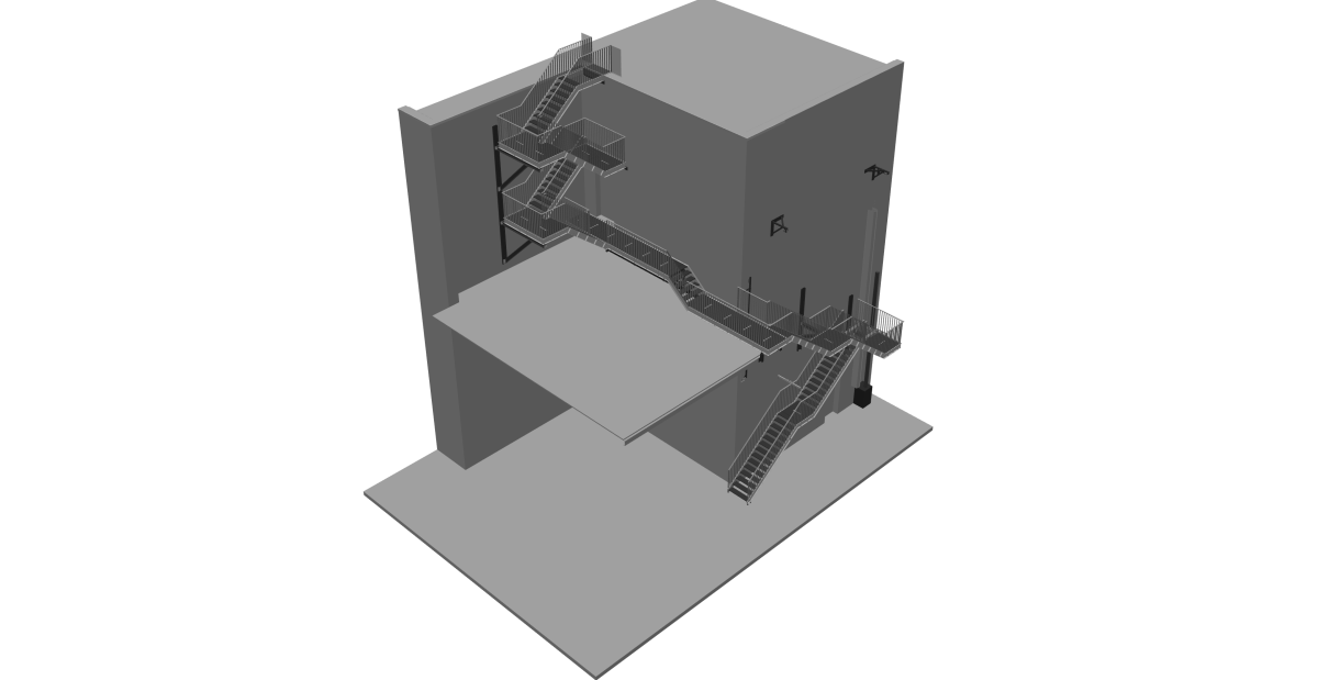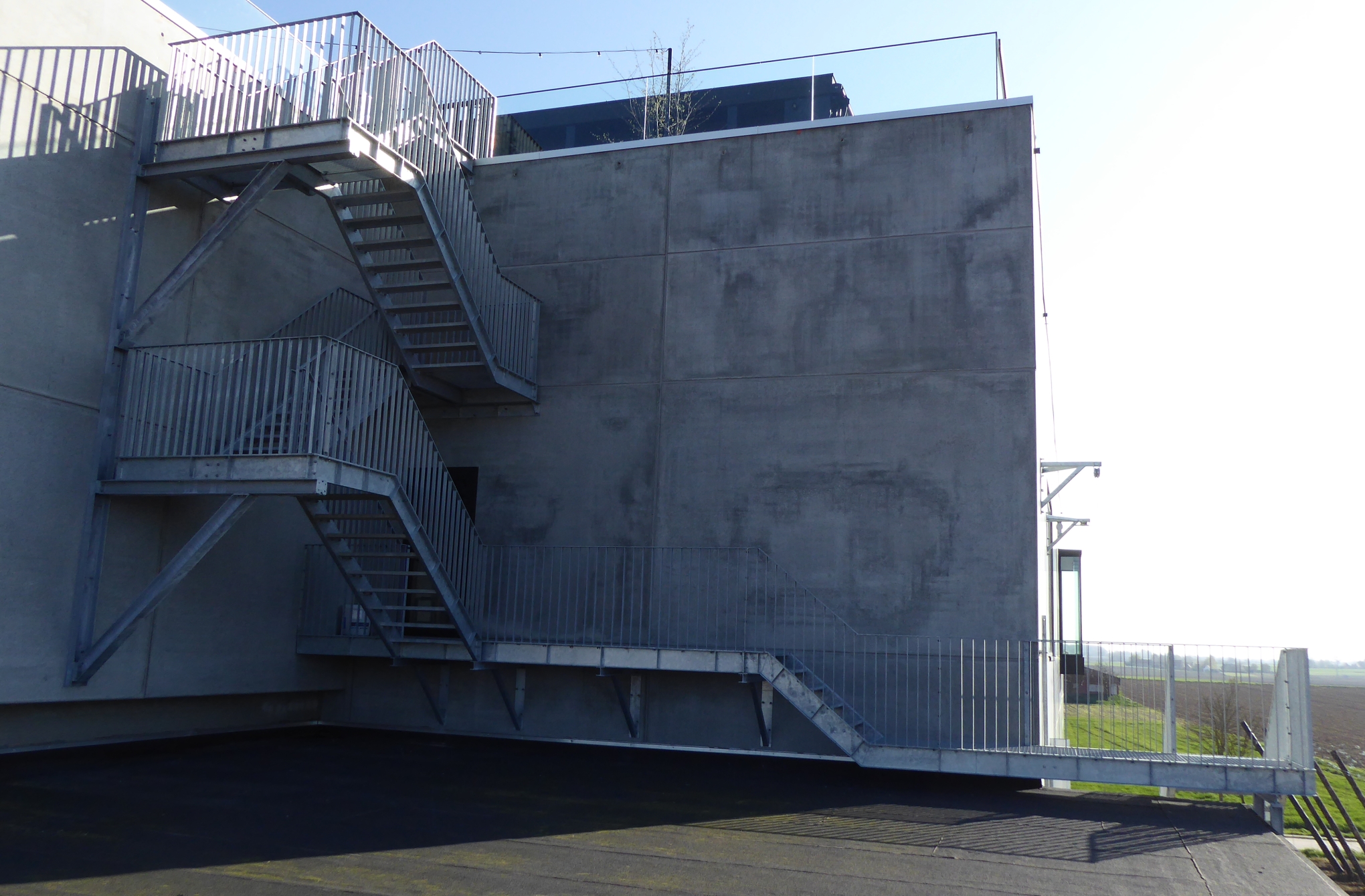 Voor de rooftop bar Bar Bernard plaatsten we een brandtrap vanaf het dakterras die om het gebouw draait en eindigt met een neerklapbaar gedeelte. De volledige constructie werd thermisch verzinkt.