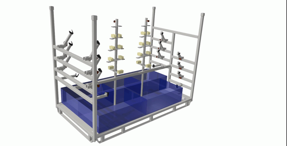 Rack met stapelkolommen Atlas Copco, Antwerpen overzicht projecten Productietrolley Groentencontainer